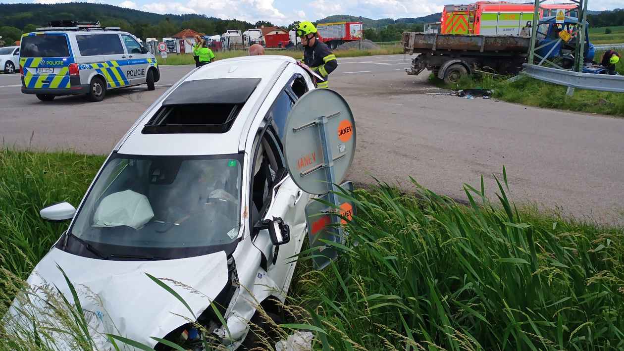 Vážná dopravní nehoda se stala v pátek 6. června odpoledne na silnici 1/4 u obce Radošovice na Strakonicku. Střet osobního a nákladního auta si vyžádal tři zraněné.